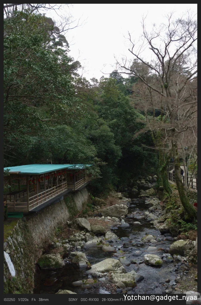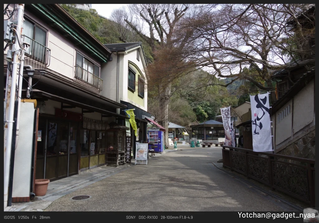 阪急箕面駅を降りてすぐは寂れた温泉街みたいな街並みですが、少し歩くと自然豊かな風景に様変わりします。