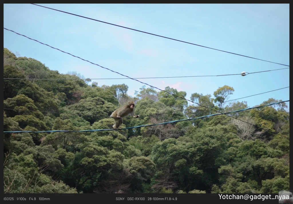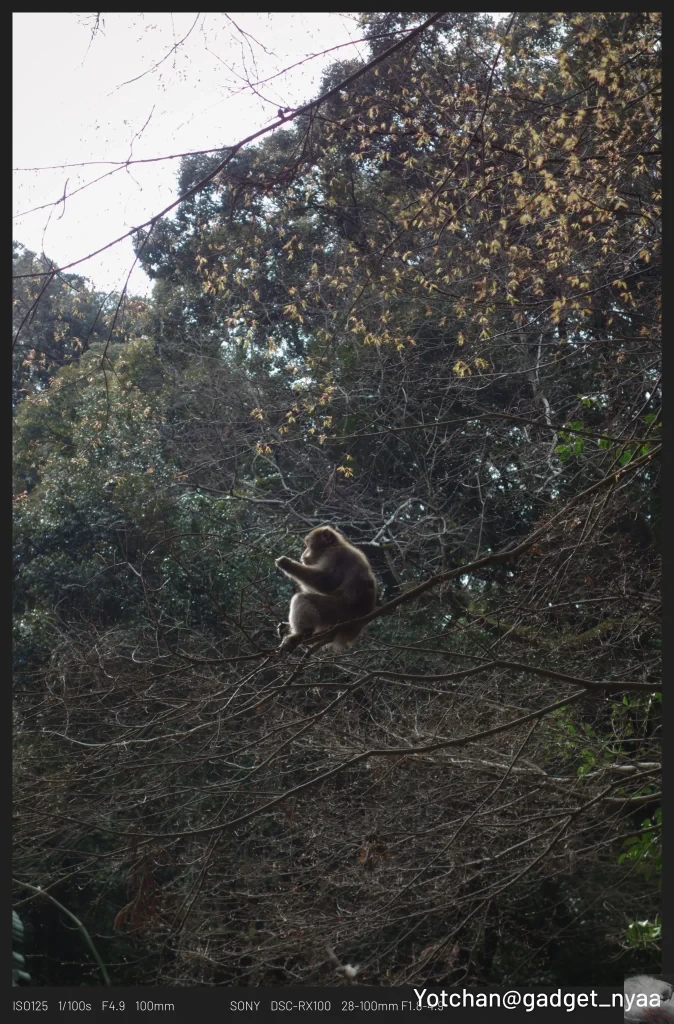そうこうしている間に野生のニホンザルを発見して撮影タイム。