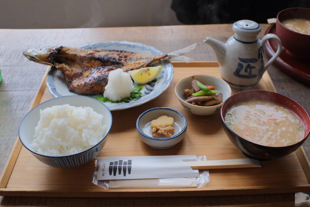 食堂では干物定食(名前忘れました)とおにぎり定食をいただきました。